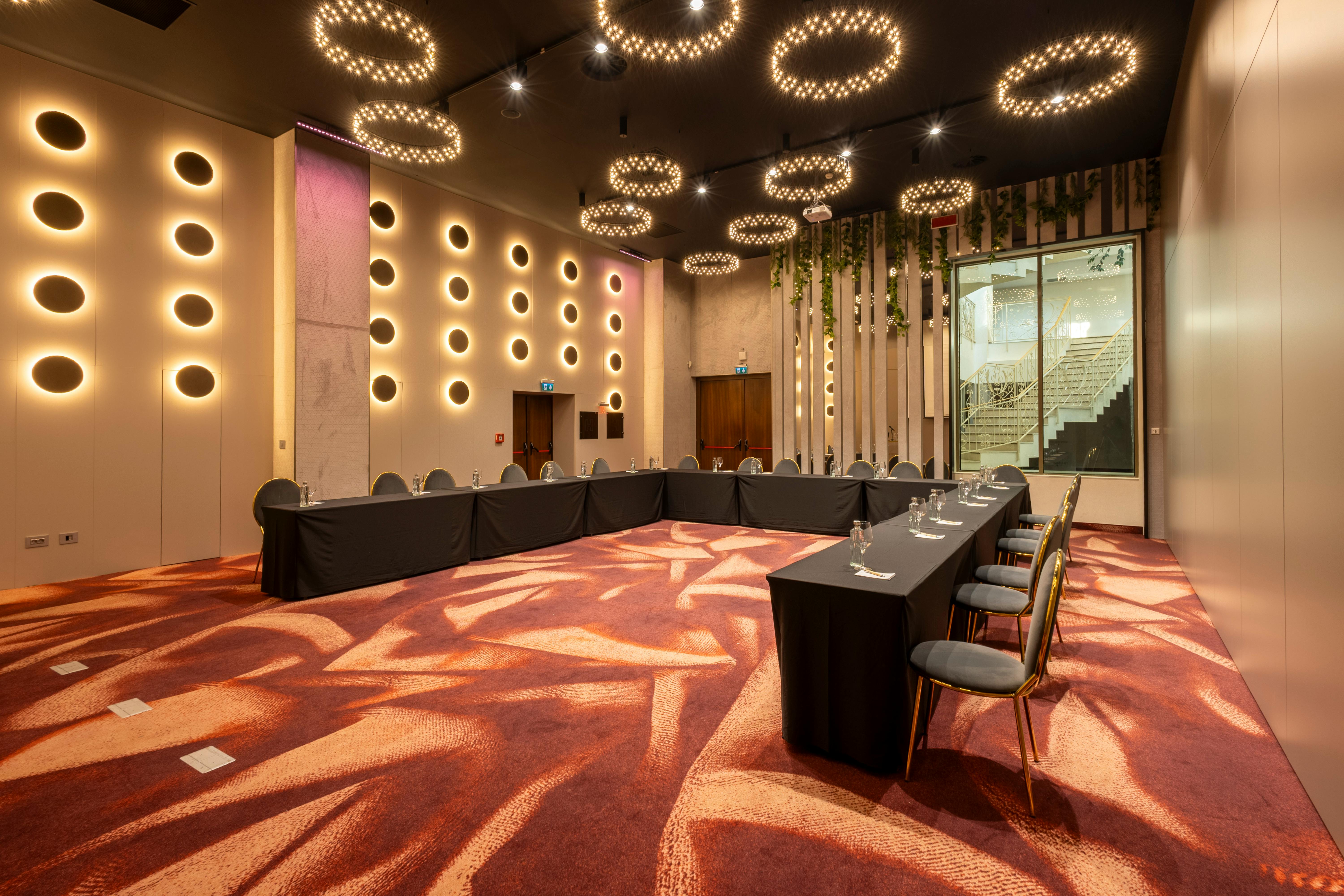 With 10 versatile event spaces featuring modern design and state-of-the-art technology, our facilities can host from 10 to 500 guests, offering flexible layouts such as theatre, classroom, U-shape, and banquet styles. Each hall is equipped with high-speed internet access, projection screens, flipcharts, and optional audiovisual and translation systems.