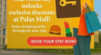 The room key you receive at check-in unlocks exclusive discounts at selected stores in Palas Mall. By scanning the QR code on your room key, you can easily see how much discount is available and at which stores.